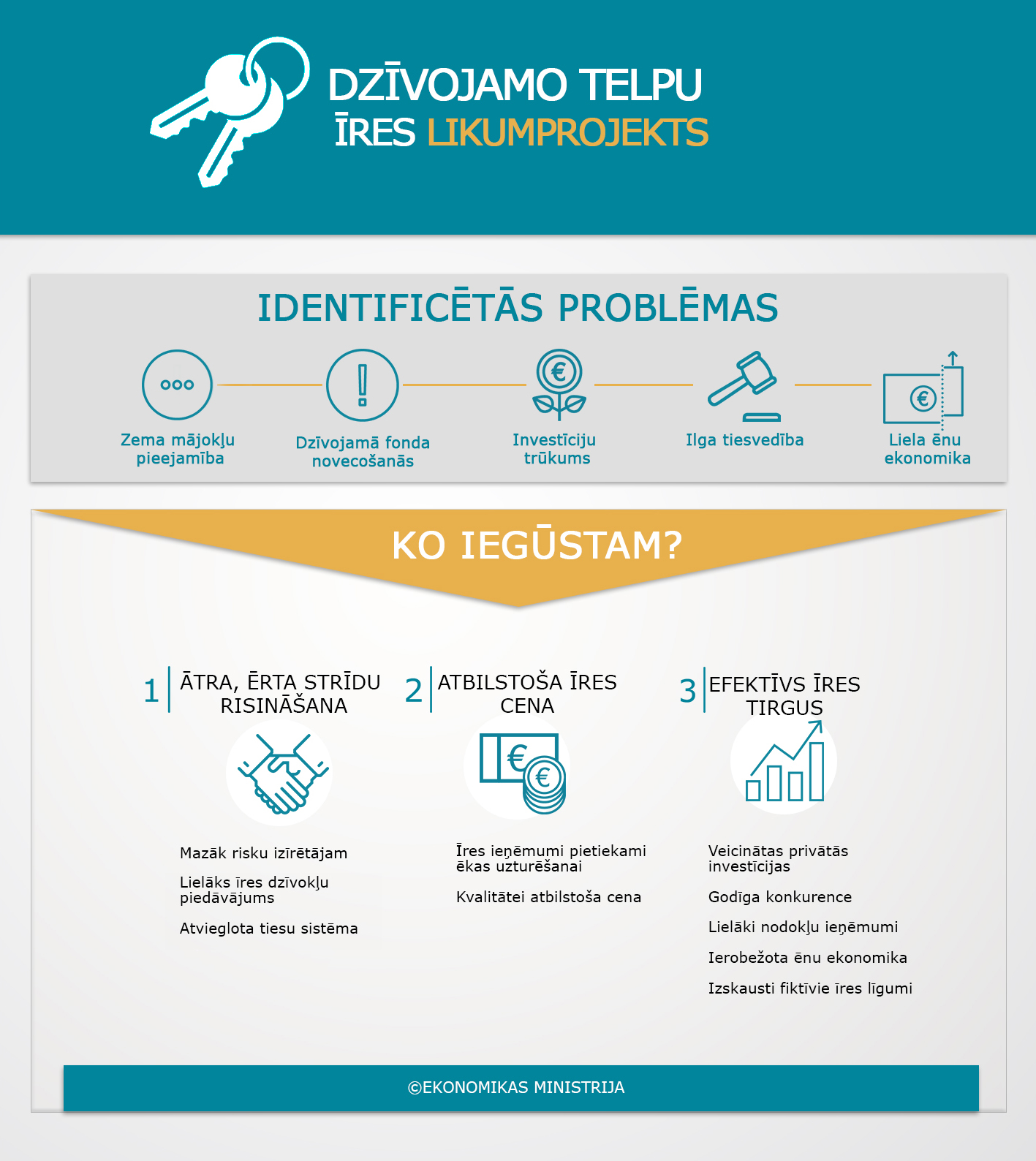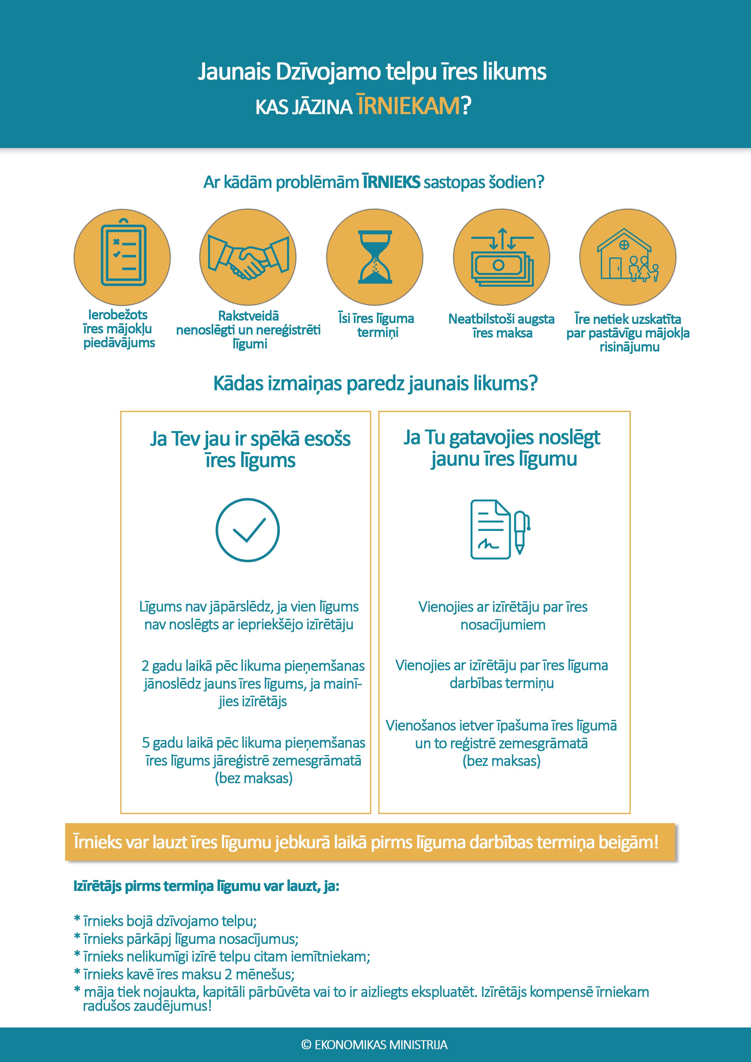 Ar mērķi veicināt mājokļu pieejamību un īres namu būvniecību Ekonomikas ministrija ir sagatavojusi likumprojektu „Dzīvojamo telpu īres likums”.