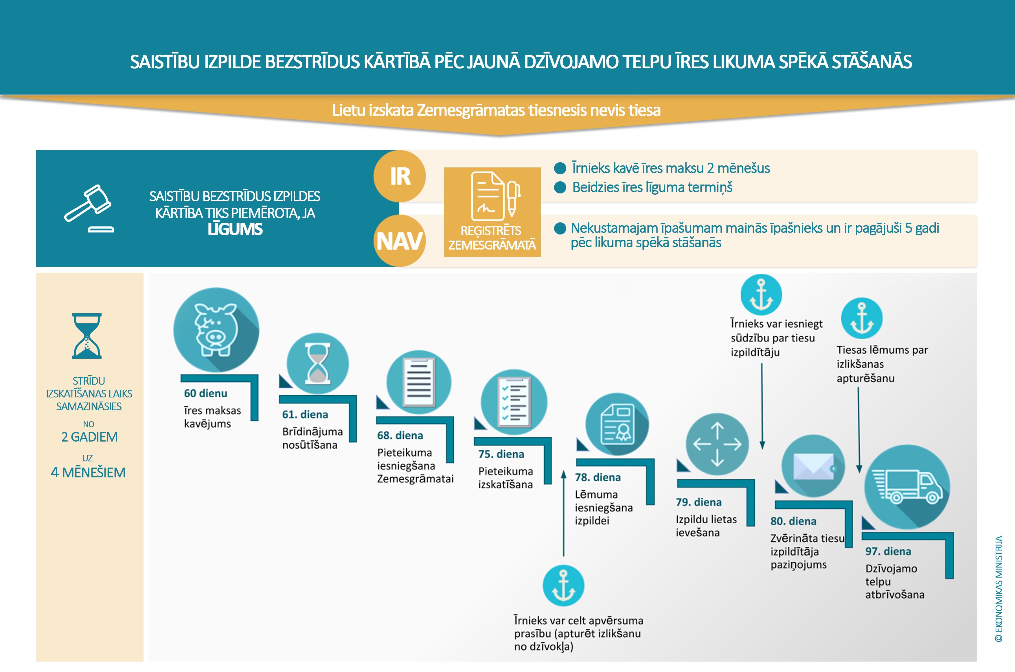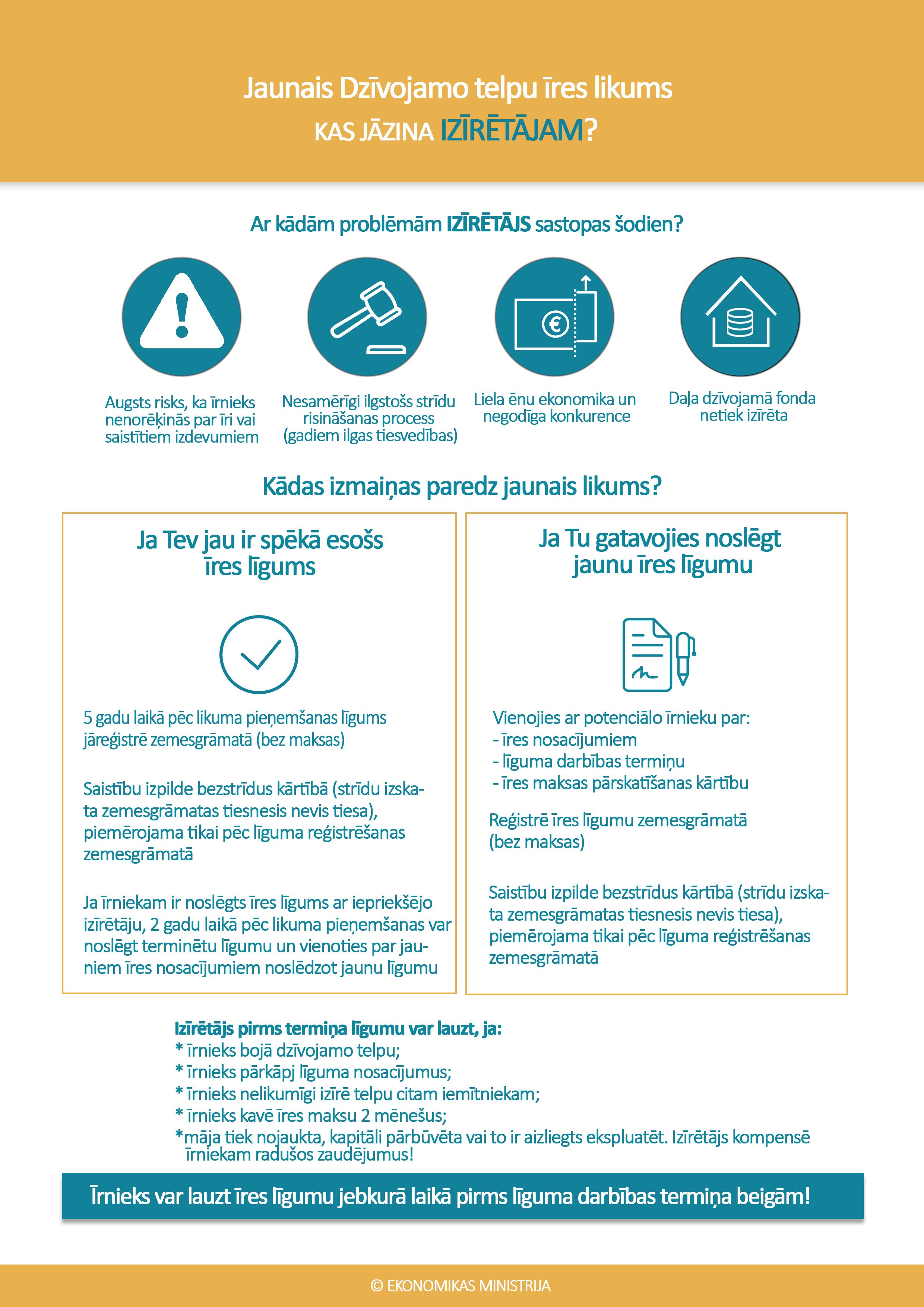 Šāds risinājums ļaus būtiski samazināt tiesvedības ilgumu, kas šobrīd var ilgt pat vairākus gadus. Vienlaikus tas ļaus arī izskaust fiktīvos īres līgumus, kā arī pasargāt godprātīgos īrniekus izīrētāja maiņas gadījumā.